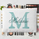 Personalized name monogram large cosmetic bags. Classy monogrammed gift idea for women. Vintage initial letter with stylish script typography. Turquoise teal blue colors. Add your own first name, family last name or surname. Cute gift idea for wedding bridesmaids too.