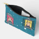 Un sac cosmétique est muni d'un joli raton laveur sirotant du café sur un balcon et d'un renne qui s'ouvre par la fenêtre sur un fond enneigé. Les animaux sont emballés dans des chandails douillets, ajoutant au thème hivernal. Le sac est une couleur turquoise vibrante, ce qui en fait un accessoire élégant et fonctionnel pour ranger votre maquillage, articles de toilette ou autres articles de première nécessité. Petite taille.