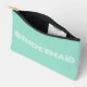 Couleur de la mer solide, petit style, sac cosmétique zippé pour votre femme de chambre mariage qui porte le mot, BRIDESMAID en grande typographie moderne sur un côté du sac. Parfait comme un sac d'accessoires de voyage pour tenir le maquillage, le parfum et les bijoux. Vous pouvez personnaliser en ajoutant le nom de la femme de ménage si vous le souhaitez. Disponible dans de nombreux modèles de couleurs mariages de demoiselles d'honneur populaires.