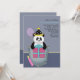 Un adorable panda est encastré dans une poche et prêt pour une fête. casquette d'anniversaire, ballons, un cadeau et une bougie ont mis la scène. La carte est facile à customiser avec votre libellé, police, couleur de police et choix de six types de papier.