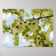 Poster mit dem Foto der weißen Blüte des Papiertaschentuchs (davidia involucrata).