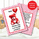 Célébrez la Saint-Valentin de votre petit-enfant avec cette adorable carte représentant un ours en peluche rouge tenant un ballon en forme de cœur. Le design de la face avant comprend un message doux, tandis que le verso présente un poème sincère entouré d'un motif de petits cœurs rouges. Personnalisez-la avec vos noms pour la rendre encore plus spéciale. Parfaite pour les grands-parents qui souhaitent partager leur amour et leur joie lors de cette occasion spéciale. L'année peut également être modifiée en 2e, 3e, etc.