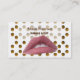 Elégante, personnalisable, carte de visite personnelle UV mat adapté aux maquillages, salons de beauté, artistes et professions créatives.One-of-a-kid - style élégant et minimal. Lèvres roses, points dorés et plumes dorées. Facile à customiser.