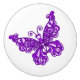 Éclairez vers le haut d'un coffre des portes avec ces derniers les boutons stylisés de traction d'art encrés par papillon pourpre de coeur. Dessin et conception de papillon de Sarah Trett.