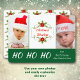 Diese doppelte Weihnachtskarte aus Foto legt Ihre Fotos an jedem Ende, mit einem hübschen Aquarellbild in der Mitte. Ihr benutzerdefinierter Text ist in der Mitte des Rahmens auf einem weißen Hintergrund rot. Auf einem grünen Holiday-Hintergrund am unteren Rand ist mehr Text in Weiß. Die Rückseite der Karte hat ein hübsches Muster, das aus demselben Blumenbild der Poinsettia besteht.