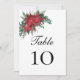 Rote und grüne Poinsettia-Flora auf diesen hübschen Hochzeitskarten Tischnummer. Sehen Sie sich unsere passenden Produkte in unserer Weihnachtskollektion Poinsettia an. Entsprechende Produkte finden Sie hier: https://www.zazzle.com/collections/poinsettia_winter_christmas_holiday_wedding_suite-119436617847447300