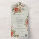 Poinsettias & Holly on Snowy Sage QR Code All In One Einladung