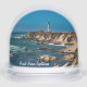 Domed snow globe features a scenic daylight photograph of the gorgeous coastline and iconic Point Arena Lighthouse, Mendocino County, California.