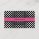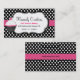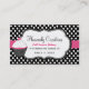 Joli carte de visite de boulangerie fait à un arrière-plan noir et blanc de point de polka, avec une bande audacieuse rose, à travers le milieu, et un secteur blanc bordé noir décoratif des textes, sur l'avant. Les graphiques lunatiques du petit gâteau rose, blanc, et noir décore l'aile gauche, de la carte. Le texte est entièrement personnalisable pour adapter à vos besoins d'affaires. Grand pour à la maison des boulangers aussi.