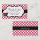 Joli carte de visite de boulangerie fait à un arrière-plan rose et blanc de point de polka, avec une bande audacieuse noire, à travers le milieu, et un secteur blanc bordé noir décoratif des textes, sur l'avant. Les graphiques mignons du petit gâteau rose, blanc, et noir décore l'aile gauche, de la carte. Le texte est entièrement personnalisable pour adapter à vos besoins d'affaires. Grand pour à la maison des boulangers aussi.