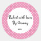 Pink Polka dot 'baked by Granny' sticker. design dispose d'une jolie bordure de polka rose et blanc avec le message 'baked with love by granny' en noir amusant police, avec quelques baisers ajoutés à la fin! parfait pour sceller ces cookies de Granny à la famille et les amis! Vous pouvez modifier le libellé, la police et la couleur dans le menu personnaliser !