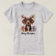 "This handsome illustration features a detailed portrait of a noble Pointer dog with its characteristic smooth coat, expressive eyes, and hanging ears. The dog is given a festive holiday twist with reindeer antlers adorned with small golden bells and red ornaments. Two beautifully wrapped Christmas presents with red ribbons sit prominently on either side. This high-quality graphic is ideal for personalized holiday gifts for Pointer owners, Christmas cards, apparel, stickers, or any product celebrating this intelligent and athletic dog breed."