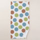 Ce kit de serviettes a une conception géométrique de points bleus, verts et marrons.