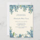Cette élégante invitation au brunch de la Fête des Mères comprend un joli arrière - plan jaune pastel, aux fleurs bleues rustiques et à la verdure. Au fond de l'invitation se trouve un motif à pois bleu classique. Célébrez maman avec ce bel invitation botanique !