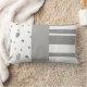 Ce coussin aux accents a un motif abstrait de points et rayures dans un design gris et blanc doux pour la décoration de la maison.