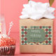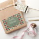 Grand Retro Dots Noël autocollant avec de grands pois rétro de canneberge, vert et bronzette et une bannière verte qui dit Joyeuses Fêtes que vous pouvez customiser avec votre nom de famille! Cet autocollant festif de vacances correspond parfaitement aux étiquettes des cartes photos de vacances, des adresses postales et de retour avec notre design Big Retro Dots.