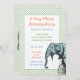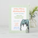 Vintage Blue Elephant Moderne Vert Point Frontière Cirque Anniversaire Fête Invitations