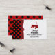 Carte élégante de mise en réseau de maman faite dans le blanc, avec le motif de point assez noir et rouge de polka, de l'aile gauche, et bordée avec un ruban et un arc rouges. Une silhouette rouge de chariot décore le côté blanc supérieur de la carte, avec le texte noir fait sur commande au-dessous de elle. Personnalisez cette carte d'amusement comme grande manière de rester en contact avec d'autres mamans pour s'charger des parties, des dates de jeu, et de la séance de bébé.