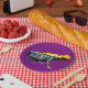 Ein Foto von einem gelben, schwarzen und grünen Giftfrosch. Passen Sie die Hintergrundfarbe an, indem Sie sie selbst in Anzug setzen!