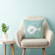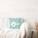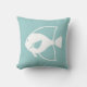 partie de la décoration sur le thème de l'océan poissons blancs sur coussin bleu turquoise d'un côté et bande turquoise et blanche de l'arrière.