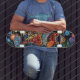 Poisson multicolore - Style autochtone - Planche à skateboard Voici une description d'un jeu de skateboard qui présente des oeuvres d'art australiennes de style aborigène, y compris des détails sur l'art aborigène : Le jeu de skateboard est une étonnante toile qui présente l'art symbolique et dynamique de la culture aborigène australienne. L'art autochtone est l'une des plus anciennes traditions artistiques du monde, qui remonte à plus de 60 000 ans. Elle est profondément liée à la terre, à la spiritualité et aux traditions orales des peuples autochtones. Le design de ce tablier est un mélange époustouflant de motifs autochtones traditionnels et d'art contemporain de skateboard. L'iconographie autochtone, par exemple, représente des chemins et des points épars suggérant des étoiles ou des traces d'animaux. Ce chef-d'oeuvre n'est pas seulement un skateboard, mais une célébration de la plus ancienne culture vivante du monde. Faire ce pont est comme glisser à travers une porte vers les riches traditions de narration des Premiers Peuples d'Australie