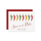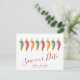 Annoncez vos fiançailles avec nos cartons d'invitation "Save the Date" au thème de piment, avec les mots "Save Our Date" dans un style de typographie tendance qui évoque l'aspect de lettrage manuscrit. Cette simple carte présente mon illustration originale à l'aquarelle avec vos noms, date de mariage et lieu de mariage. Le verso des cartes est d'une couleur rouge profond complémentaire. Parfait pour les mariages de style latin. Pour voir la suite de mariage assortie et plus de cartons "Save the Date" non-photo par Victoria Rigali, visitez DoTellABelle sur Zazzle.