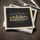 Bachelor-Party-Servietten aus schwarzem und goldfarbenem Poker mit vier Asse und Marquee-Schild. Personalisieren Sie es mit den Veranstaltungsdetails des Bräutigams.