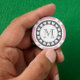 Graue und rosa Poker-Chips mit Braut und Bräutigam Monogramm. Individualisierbare Initialen im Herzen. Personalisierte Party-Poker-Chips mit mit Monogramm Namen Anfangs der Hochzeit Paar. Niedliche Geschenkidee für Hochzeitsgäste. Holzkohle, grau und rosa. Gastgeschenk Hochzeit im Vegastil.