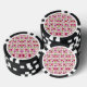 Poker chips with a vibrant pink floral pattern set against a white background. Bold black and white segments circle the edges, creating a striking contrast.