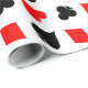 Poker, der Karten Anzug Verpackungspapier abspielt. Fun Muster Design mit Herz, Diamanten, Clubs und Pik. Schwarz-Rot-Weiß-Kartenspiel-Farben. Niedliche Geschenkidee für Hochzeitsgeschenke von Las Vegas. Auch für Bridge- und Black Jack-Spieler geeignet.
