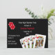 Poker-Bachelor-Party-Einladung in Schwarz getan mit Grafiken von Spielkarten und Poker-Chips. Personalisieren Sie den benutzerdefinierten weißen und roten Text, um den Anzug Ihres Pokers Party benötigt.