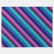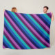 Une grande couverture en toison avec un design motif coloré de bandes diagonales en turquoise cool, bleu océan, bleu marine, pourpre prune et lavande.