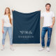 En tant que pièce coordonnée de la collection Rustic Monogram de Lea Delaveris Design, cette couverture présente un fond bleu marine classique avec un monogramme entouré de branches ainsi qu'un nom de famille et une date établie. Un oreiller assorti est disponible. Parfait pour un cadeau de jeunes mariés ou un cadeau de douche de mariée !