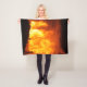 Une couverture en toison avec une photo d'un bâtiment en feu.