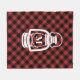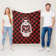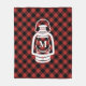 Une couverture en toison ornée d'un motif plaid d'héritage rouge et noir (buffle). Le centre présente une illustration d'une lanterne blanche de camping. Personnalisez l'initiale sur la lanterne.