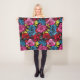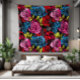 Un motif maximaliste audacieux avec des fleurs rouges, roses et bleues vives, des feuilles verts électriques et des accents de goth gris.