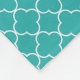 Couverture faite sur commande de monogramme dans le motif marocain turquoise de bleu de turquoise, de gris de charbon de bois et blanc de quatrefoil de trellis.