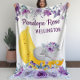 adorable joli éléphant dormant sur une banane mûre avec de belles fleurs violettes, nom personnalisé et nom de famille personnalisé.