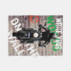 Motorcycle motocycliste avec casque sur une couverture en polaire personnalisée avec un mur en briques rouges graffiti personnalisé et texte.