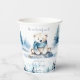 Polar Bären arktischen Winter können wir frühzeitig warten Baby Dusche Geschirr personalisierte Vorlage Party Becher, Aquarell niedlich polare Teddy tragen einen blauen Schal sitzend auf Eisfelsen Schneekiefern Winterthema Babydusche Begrüßungsschild personalisiert Babydusche Papier Becher
