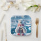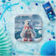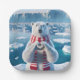 Ein Eisbär mit einem rot-weiß gestreiften Schal steht auf einer eisigen Landschaft und bildet mit seinen Pfoten eine Herzform