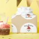 Personalisieren Sie mit Ihrem individuelle Name und frohe Weihnachten. Niedliche Illustration eines weißen Eisbären mit großen Pfoten, Weihnachtsmannmütze und orangefarbenen Weihnachtsschmuck.