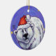 Animal Parade Festival Polar Bären Weihnachtsgeschenke , Tjirts und Accessoires zeigen unser lustiges Kunstwerk eines niedlichen Eisbären, der in einer roten Weihnachtsmannmütze stehend in einer schneebedeckten Landschaft gegenüber einem von unserem talentierten Kinderbuch-Illustrator Traci Van Wagoner gemalten dunkelblauen Sternenhimmel verdeckt ist. Auf der Rückseite dieser lustigen Tiergeschenke finden Sie auch unseren skurrilen Eisbären vom Rücken mit einem heiligen Kranz mit einem roten Weihnachtsbogen auf ihrem Boden. Unsere festliche Meeresbärenkunst ist ein einzigartiges Geschenk für Weihnachtsliebhaber, Eisbärenliebhaber, Wildtierliebhaber und süße Tier-Kunstliebhaber.
