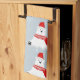 Niedlicher Eisbär mit rotem Hut und Schal auf hellgrauem Hintergrund mit Schneeflocken