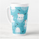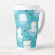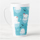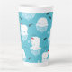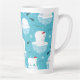 Playful polar bears in Santa hats float on icy blue seas surrounded by igloos, fish, and snowflakes. A cool Christmas favorite.