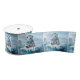 Ein Eisbär, der einen blauen Pullover, Ohrmuffe und einen Eisberg trägt, während er eine Zeitung mit dem Titel "Polar News" hält.