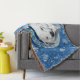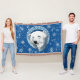 Ein Portrait eines Eisbären, gezeichnet im Jugendstil. Schneeflocken rund um den Eisbär gegen die Schattierungen des blauen Kulissen.