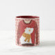 This pretty and cute mug features my original graphic art of an 'ugly sweater' with a polar bear on the sweater and striped sleeves. It was put on a geometric pattern in the background in peach-pink color tones. It has a dark red color inside it and on the handle. These are 11-ounce mugs, just the perfect size for your home brewed coffee or tea - or even hot chocolate! It would make a great gift, and you can put packets of coffee, tea bags or hot chocolate inside. One other gift idea is putting a little plant in it to make it extra special for your loved one. A fun Christmas Holiday gift for anyone.
