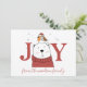 Eine einzigartige moderne Weihnachtskarte mit illustrierter JOY-Typografie mit Eisbär, mit einem Eisbärenmuster auf der Kartenrückseite.