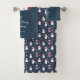 Dieses skurrile Weihnachtshandtuch-Set mit einem optionalen tiefblauen Hintergrund, überzogen mit rot-weißen Eisbären und Drehtext-Design von "A Beary Merry Christmas". Grosses Badetuch hat ein koordinierendes Muster bezaubernder Eisbären. Fügen Sie Ihren Namen mit der bereitgestellten Vorlage hinzu. Suchen Sie ID851 um alle koordinierenden Produkte für dieses Mix n' Match Design Set zu sehen.